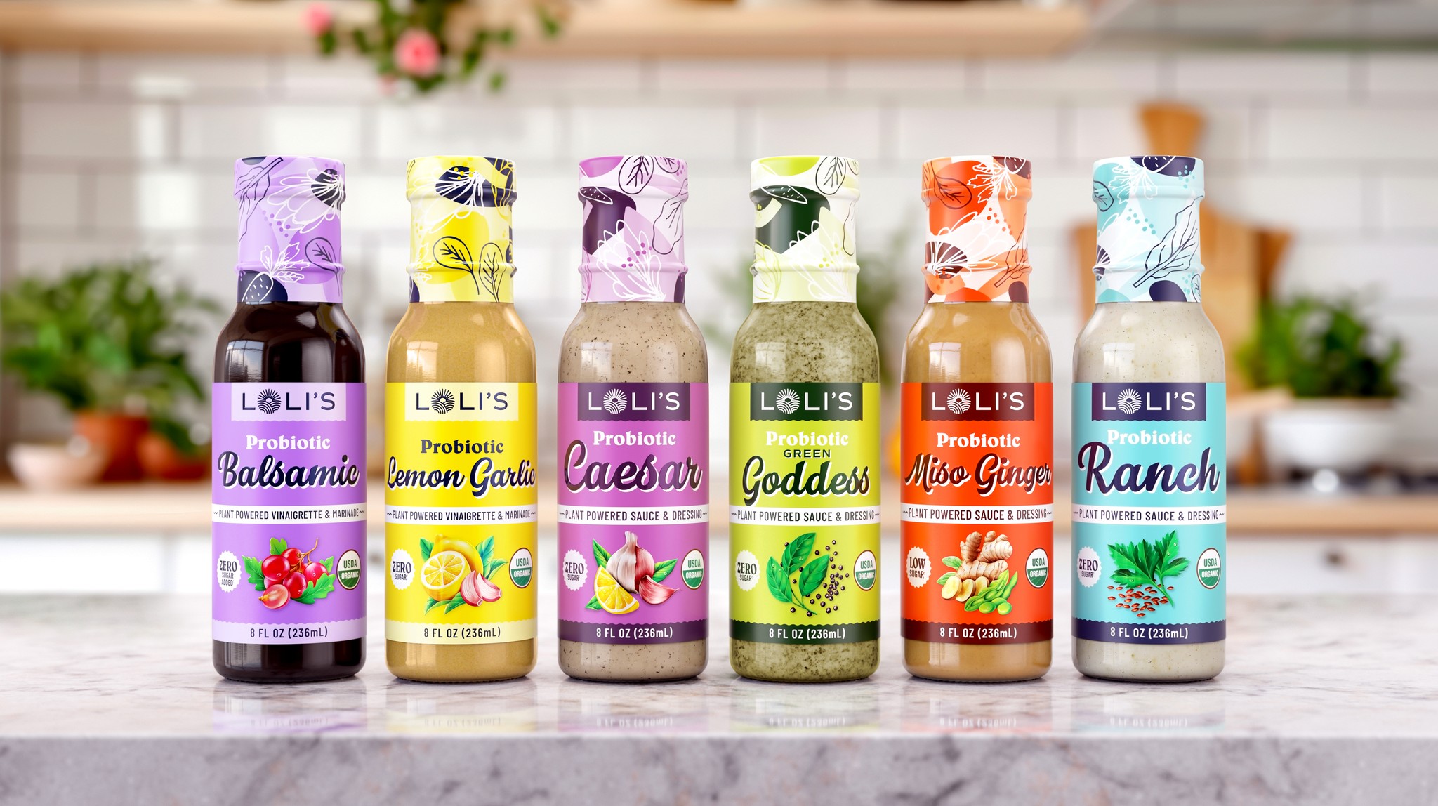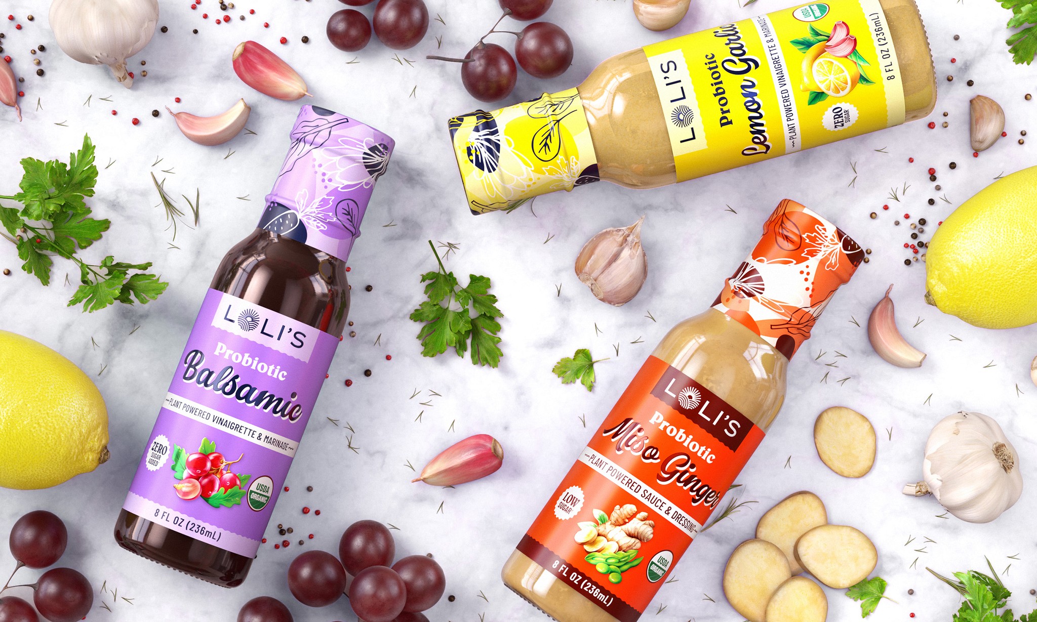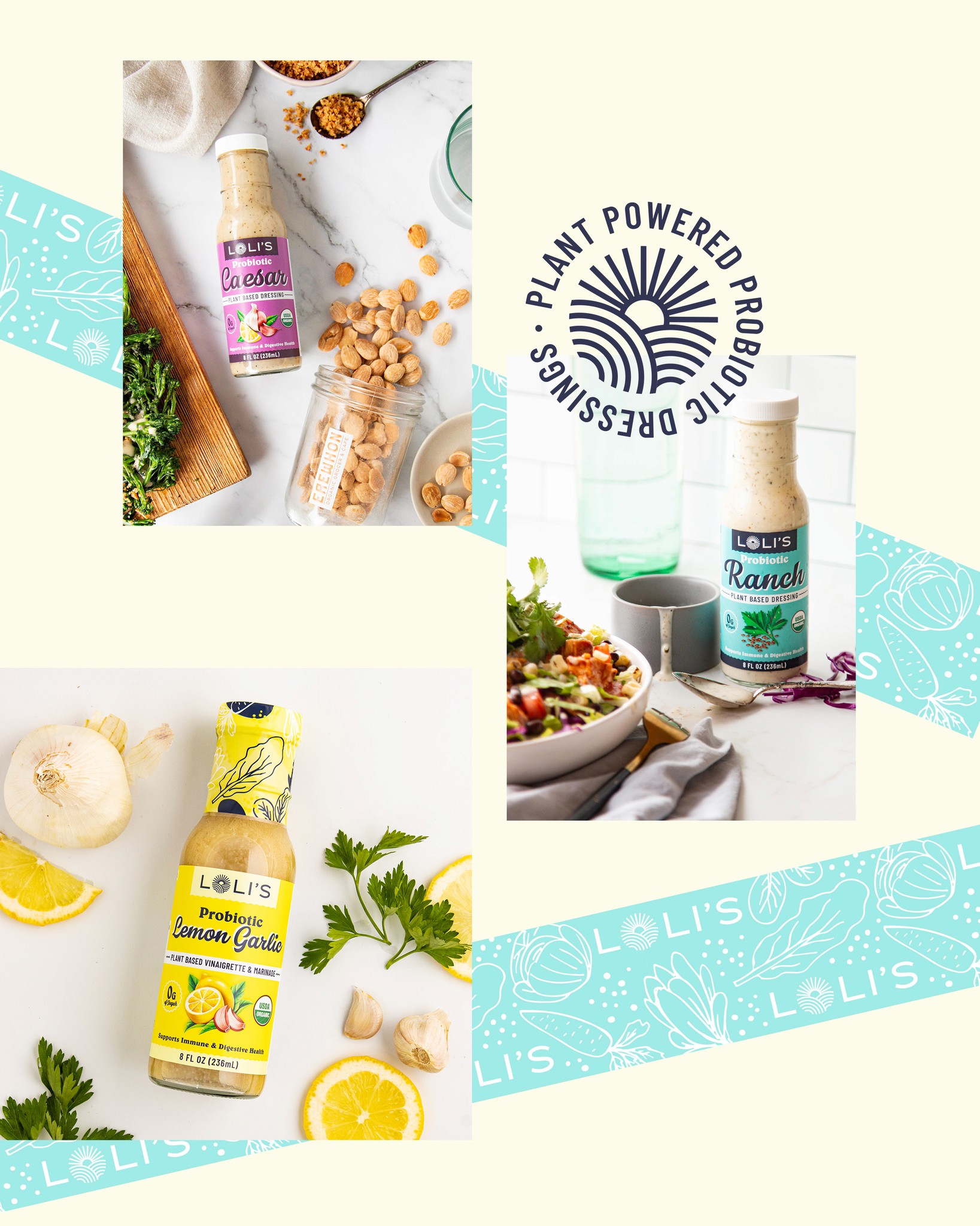 Loli’s looked to stand out to health-conscious consumers by emphasizing the simplicity and quality of their ingredients compared to the average salad dressing. Stop pouring water on your salads and start covering them in high-quality ingredients and probiotics! We placed those ingredients front and center on every bottle—fresh, simple ingredients you can trust.