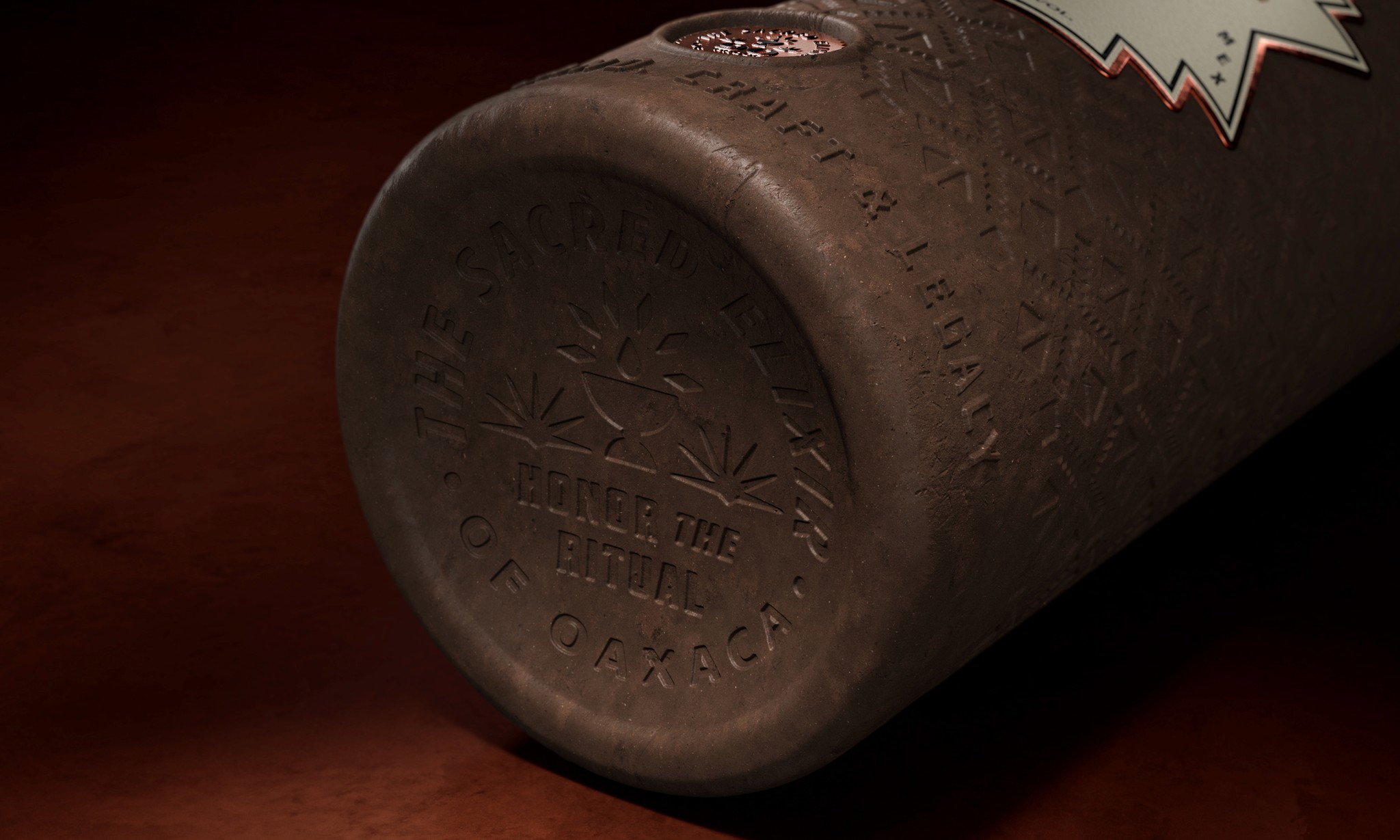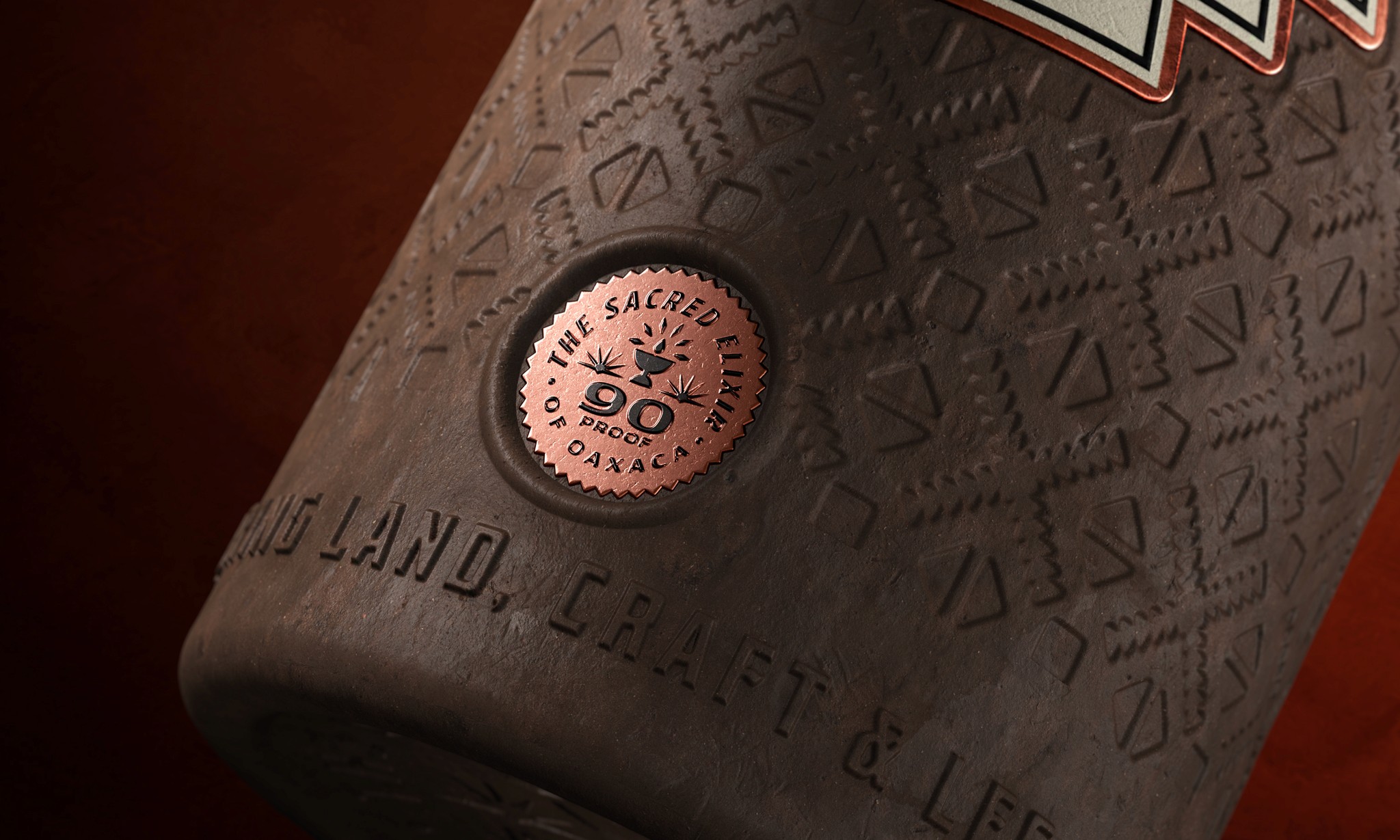 Traditional earth tones of Oaxacan pottery and cookware informed the bottle’s material.